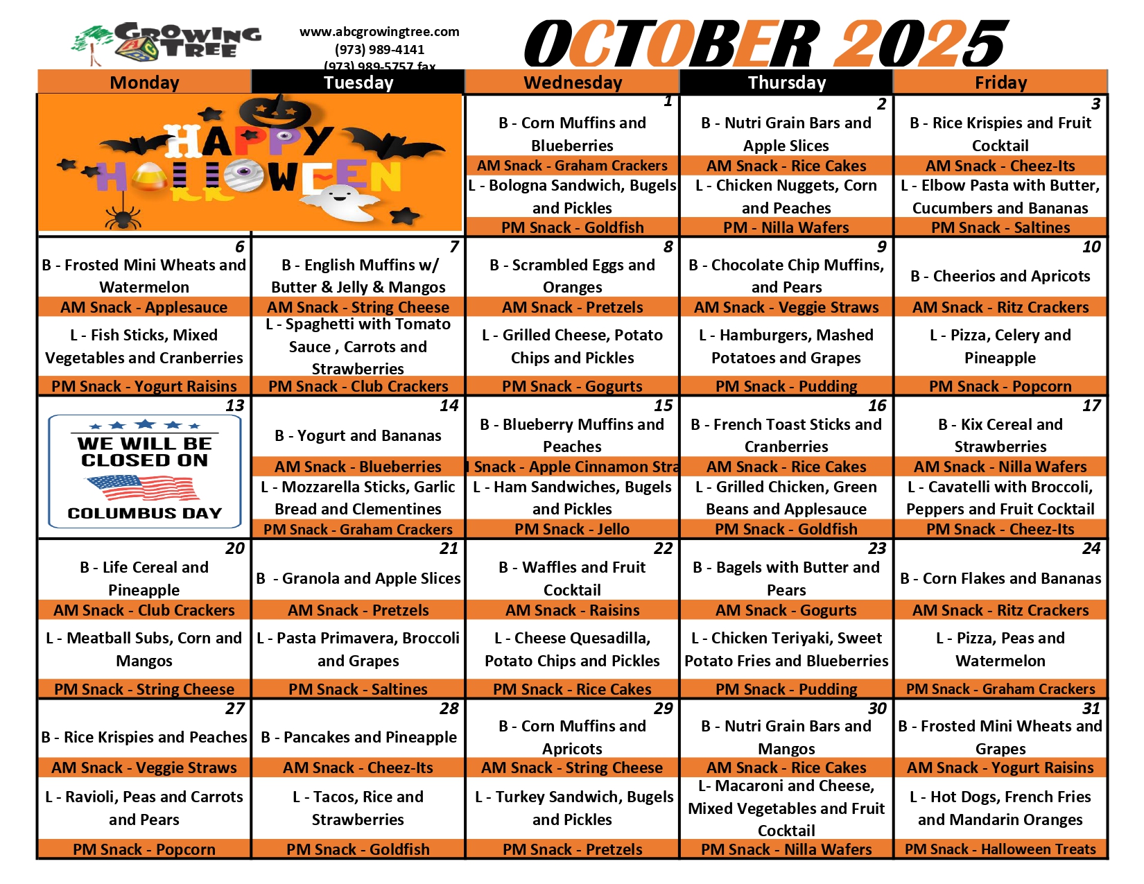 October 2025 Menu