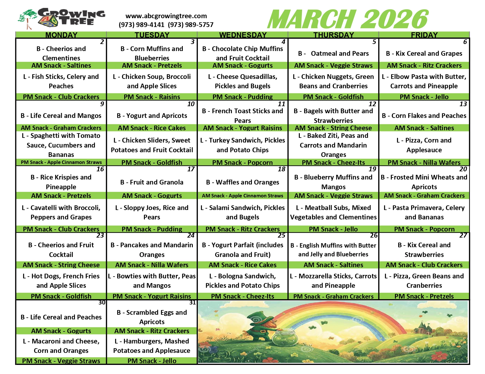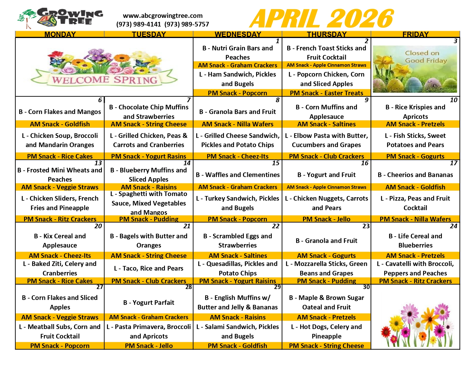 If you choose to send in additional snacks for your child, please remember that we are a 100% nut-free facility.